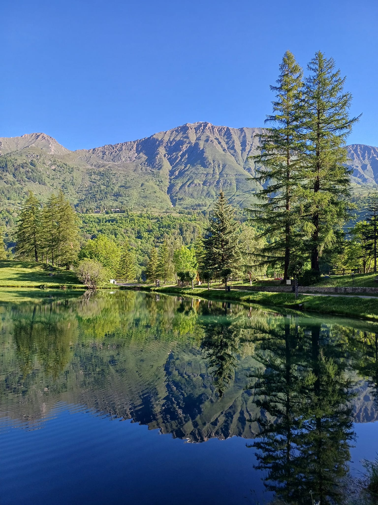 Posta nel vasto prato a ridosso del laghetto, tranquilla e soleggiata, davanti al ristorante-hotel, comodo parcheggio adiacente per auto ospiti.
